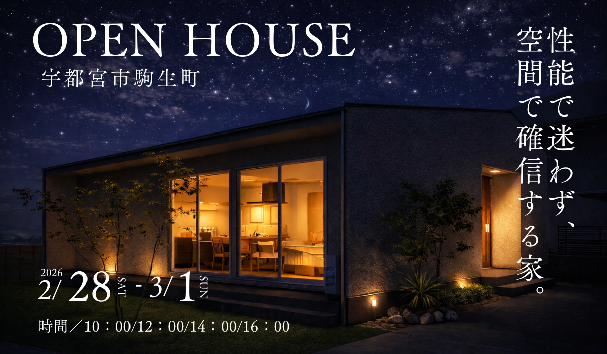 2026年2月28日㊏ -3月1日 ㊐平屋|性能で迷わず、空間で確信する家。【宇都宮】