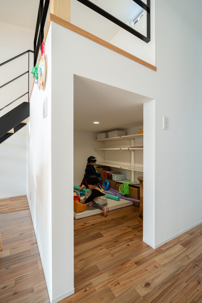 可動棚を設置しているので、将来的には納戸やパントリーとして活用可能です。
