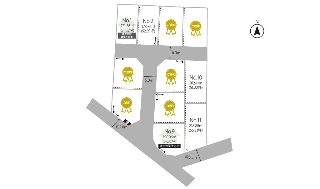 本分譲地は土地売買条件付き契約締結後3ヶ月以内に当社と住宅の建築請負契約を締結していただくことを条件として販売いたします。この期間内に建築請負契約が成立しない場合、土地売買契約は白紙となり、受領した金額は全額無利息にて返還いたします。