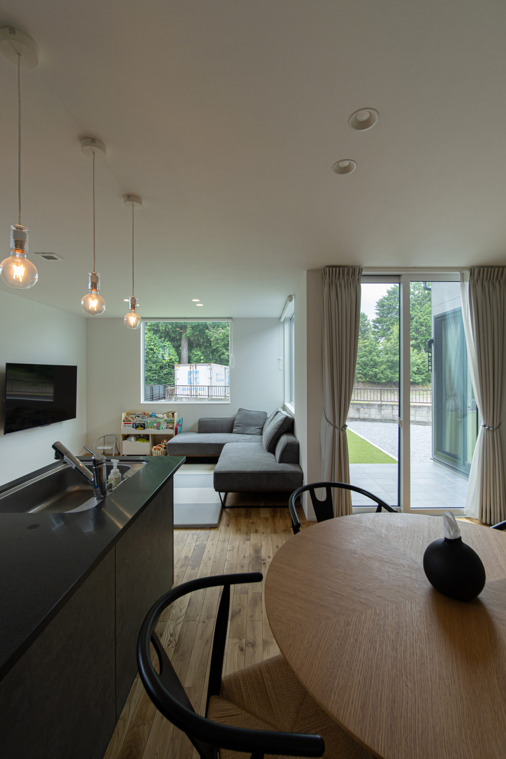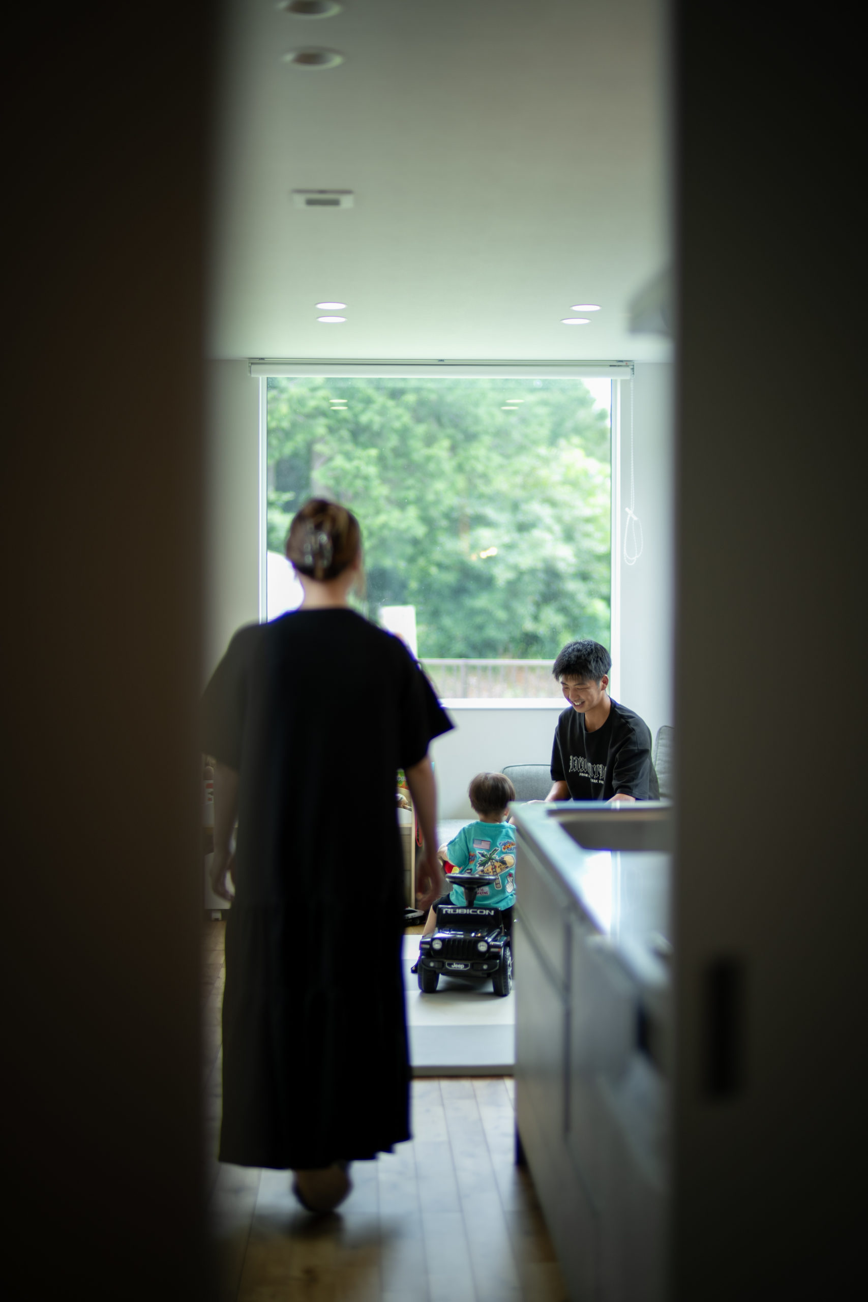家族みんなのお気に入りの場所、陽だまりのリビングでソファに寄りかかって外を眺めながらのんびり過ごす、豊かな時間を満喫しています。