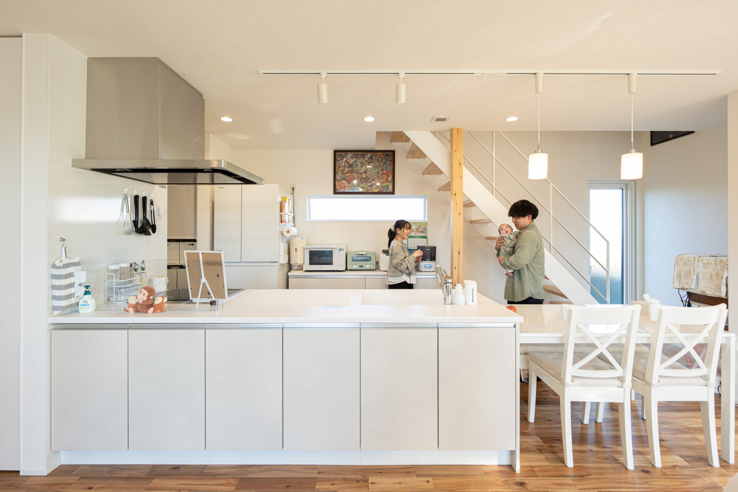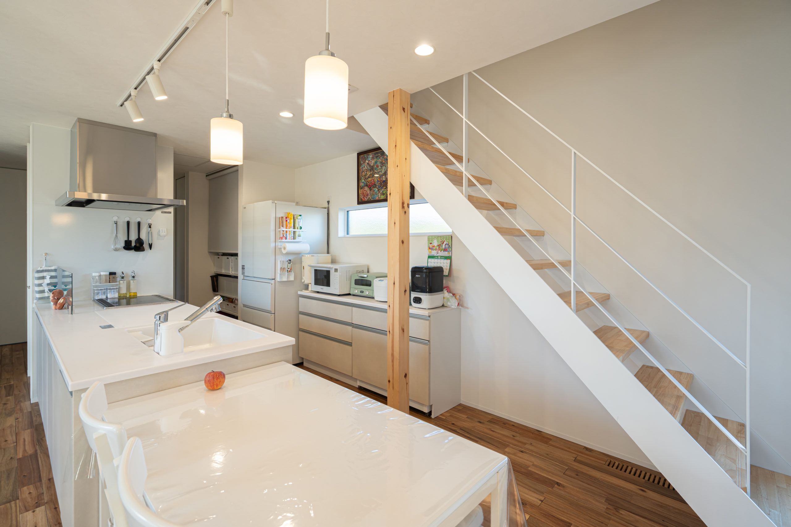 「もともと鉄骨階段を入れたいと思っていて、『空門の家』で実物を見てますますいいなと思いました。ただ、黒のアイアンはうちの雰囲気には合わないと思ったので、白くすることはできますか?と相談しました。『できますよ』と快く応えてくれ、仕上がりもばっちりで気に入っています」と大満足のご様子。相談しやすい関係が、理想の家づくりを後押ししてくれたようです。