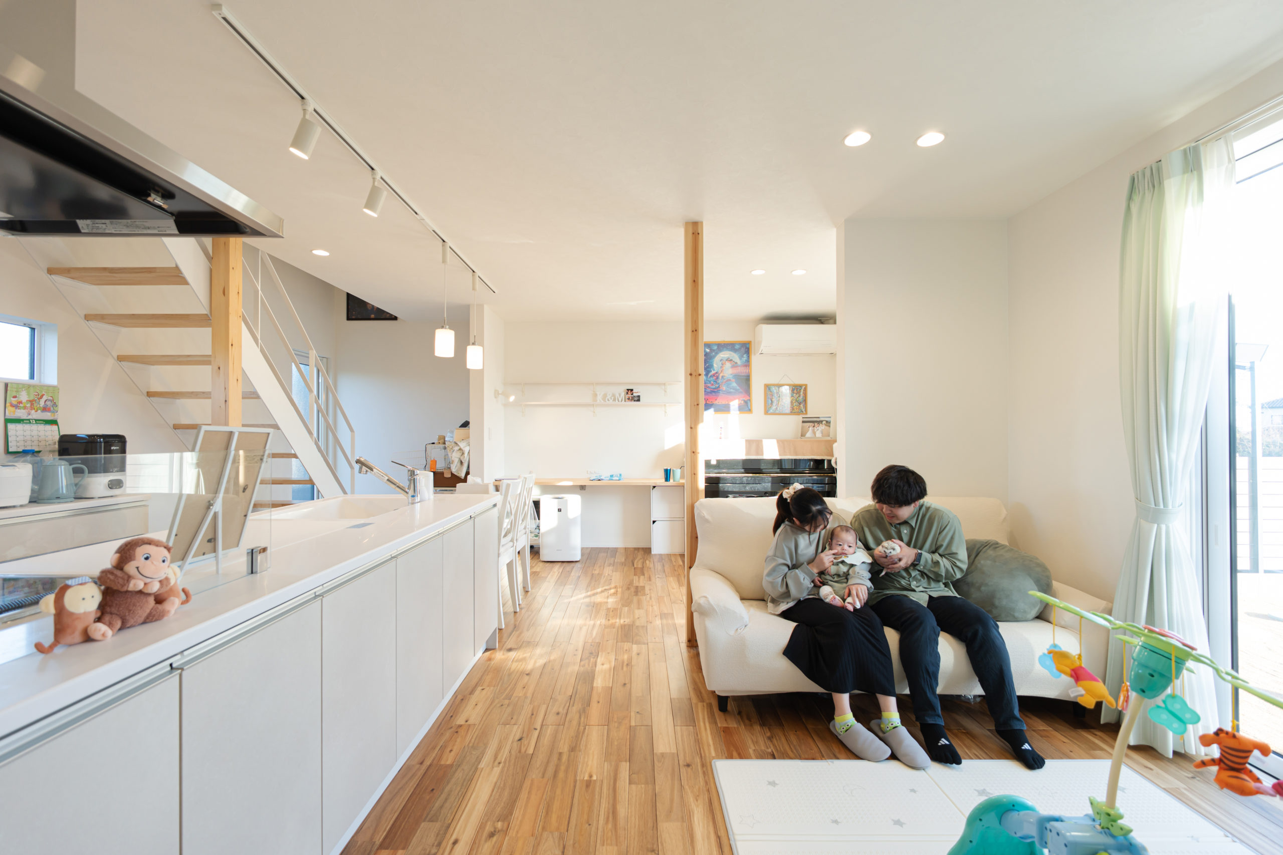 「結婚当初に住んでいたアパートも、実家も、とにかく寒くて。暖かい家で暮らしたいというのが一番の願いでした」と話すKさんご夫妻。とくに、冷え性の夫人にとっては足元の冷えがつらく、断熱性能や床のあたたかさを重視して家づくりをスタートしました。